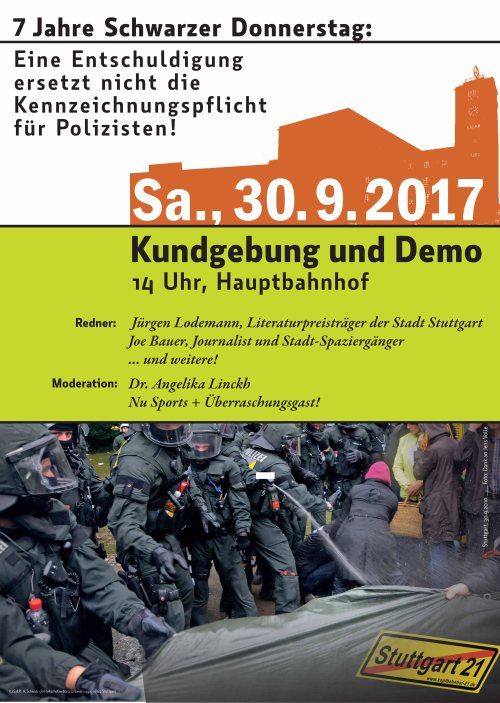Liebe Freundinnen und Freunde des Schlossgartens, ich begrüße Sie und achte Ihren Mut, hierher zu kommen und öffentlich zu trauern um die gefällten Bäume. Es braucht Mut, sich in diesen Tagen als Parkschützerinnen und Parkschützer nicht verschämt zu verkriechen. Allerhand Häme klingt noch in unseren Ohren. Mit unserer öffentlichen Trauer wollen wir zusammenstehen und uns gegenseitig Halt geben, und wir wollen zeigen, dass nicht wir, sondern die Täter sich schämen müssen.